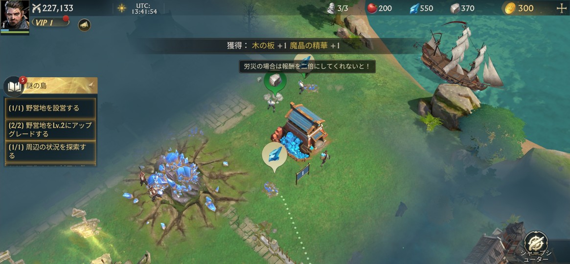 島には石化した村人などがおり、それをタップで簡易的なイベントなども起きます。その結果で、資材が手に入ったり、作業をしてくれる村人を雇い入れたりすることが出来ます。