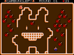 にゃんぴ、というMSX2時代のDSで人気だったパズルゲームシリーズのキャラクターを、カーバンクルに置き換えたもの。カーバンクルを操作し、画面内の宝石をすべて取るか、アルル(当時は名無しでマニュアルには「おんなのこ」表記)のところまでたどり着くとクリア。