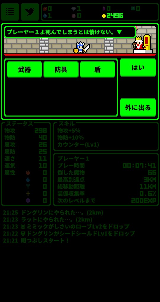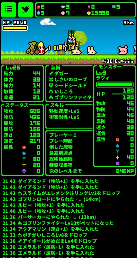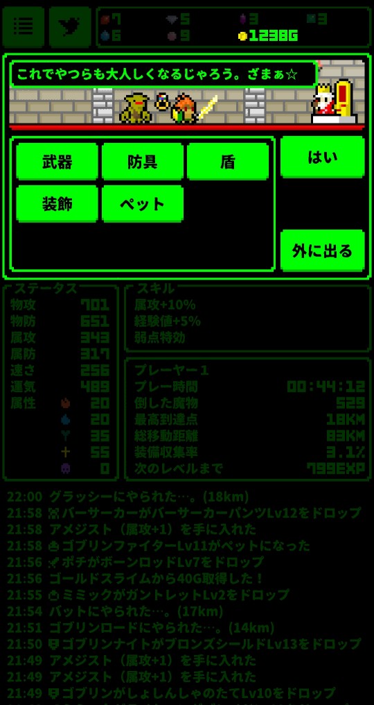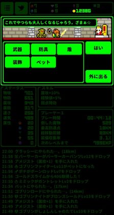 詳細のマニュアルがないためダメージへの反映される値が把握しづらいのですが、属性攻撃がある程度強いゲームなので、こういったソロプレイのゲームで死にステータスになりがちな知力もしっかり有効。