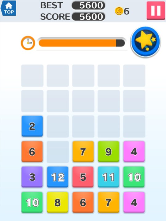 例えばこの画面ですと、4と4を合わせるのに10のパネルが邪魔ですが、まず上にある4を別の場所にヨイショっと移動させ、10も同じように移動させて、そして4と4をくっつければホラ!という感じです。