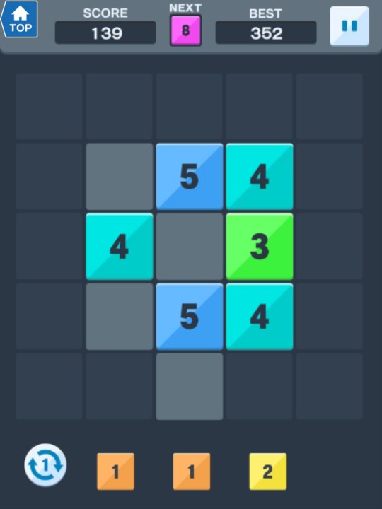 2と2を上下に合わせると3に、3と3を上下に合わせると4になるパズルですが、邪魔なパネルを自由に移動させることができるため、とっさの判断で窮地を脱することができるのが特徴かな。