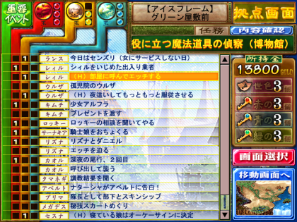 ゲームシステム上、依頼を受けてそれを達成する、というクエストを中心に進めるのですが、このクエスト、大体「ランス君がヤリたいことを目的にして定められる」ものが多いからですね。