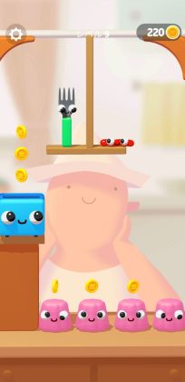 物理演算を利用したパズルゲームで、ソーセージをスワイプで操作して、フォークに突き刺さるように誘導してあげるというゲーム。