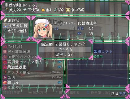 患者から巻き上げたお金で、大藪とマラリアキャリーにそれぞれスキルを覚えさせることができます。