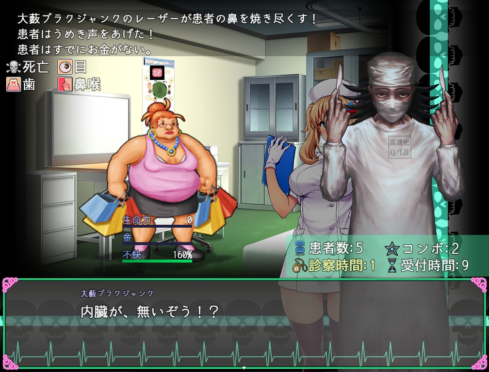 このゲームは、医師・大藪と、看誤師・マラリアキャリーが、この問題だらけの社会へ(文字通り)メスを入れる物語である!