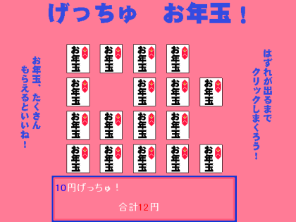 はずれが出るまでお年玉をクリックして中身がもらえるよー、というミニゲーム。