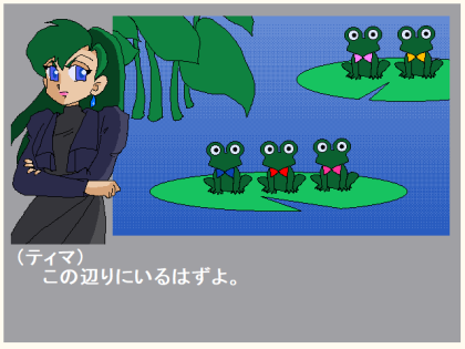 表示されている蛙の「エル」と同じ、赤いリボンのカエルを、画面の中から見つけるというゲーム。