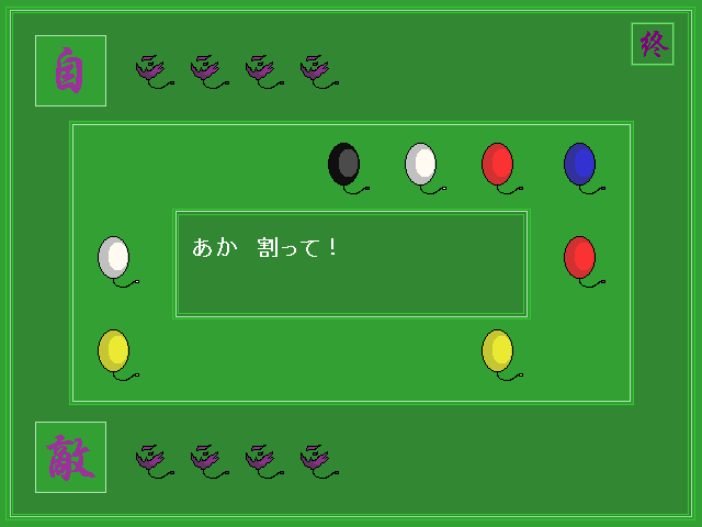 画面中央に表示される指示に従って、風船をクリックで割ります。