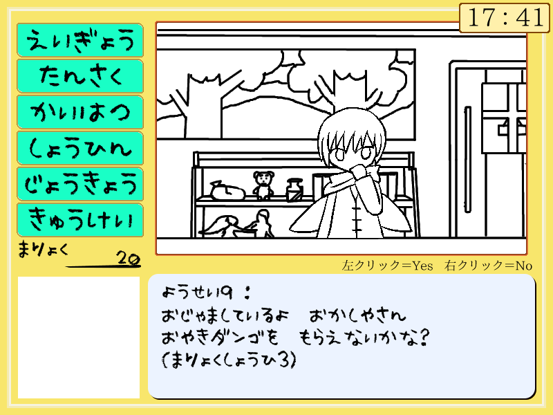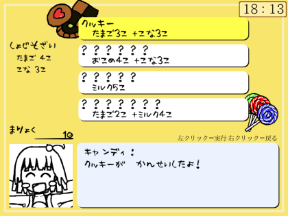 左下の「まりょく」を消費して、お菓子を販売(販売と言う言葉がry)します。