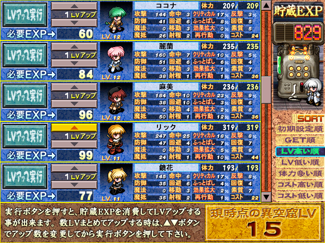 そして、この装置を使い、おのおののキャラクターにEXPを分配するのです。