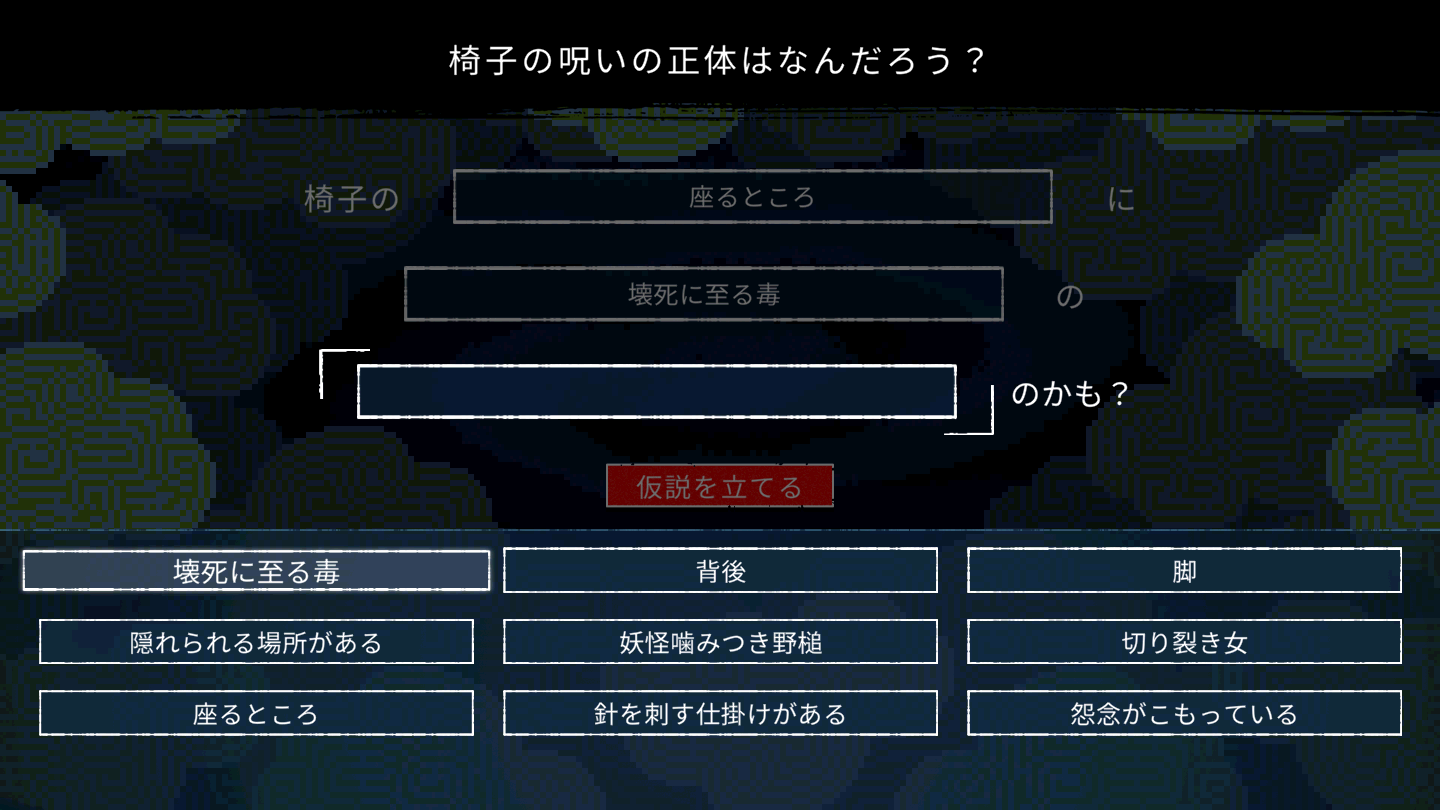 これはチュートリアルの呪いの椅子の推理パートですが(第一話の推理パートのいいスクショがなくて…