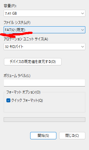 「FAT32」でフォーマットします。