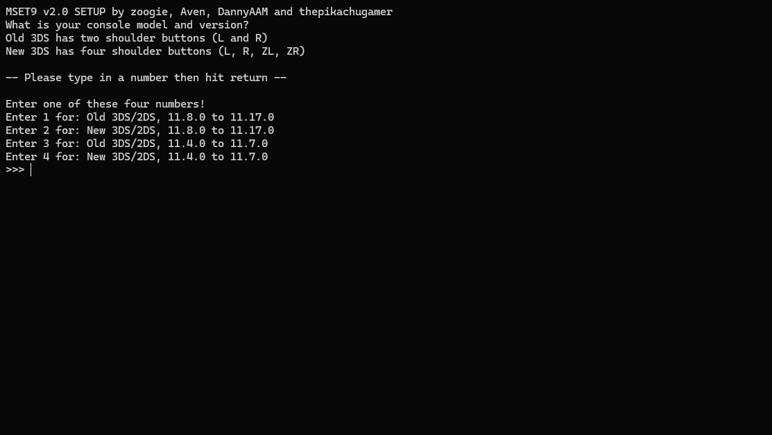 3DSと、3DSのファームウェアのバージョンに合わせて番号を選びます。