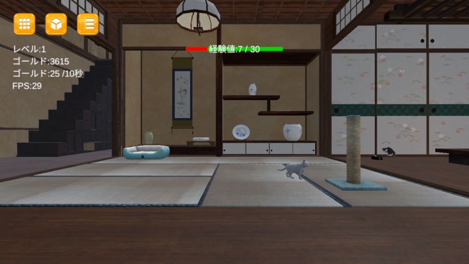 操作はほぼなく、猫ちゃんをクリックしても、猫ちゃんの行動に干渉はできません。