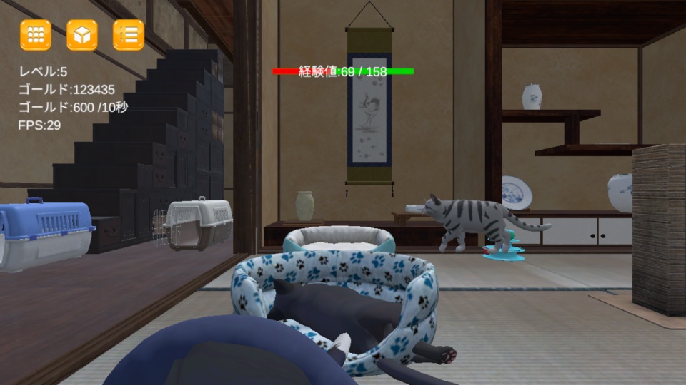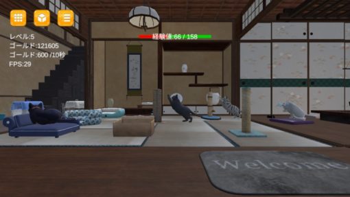 家具を置くと猫がやってきてコインを落とすので、それを利用してどんどん家具を増やし、猫ちゃんを部屋にたくさん招き入れる鑑賞ソフト。