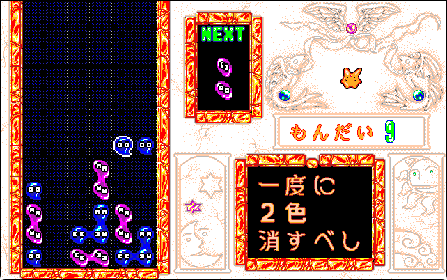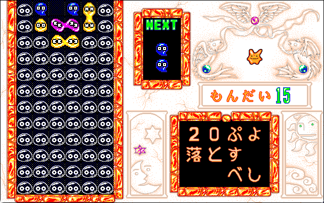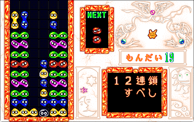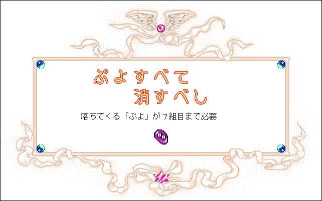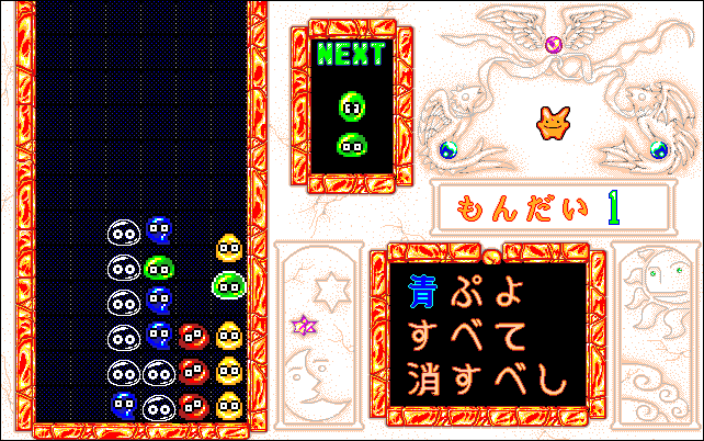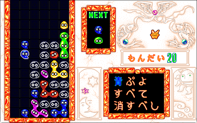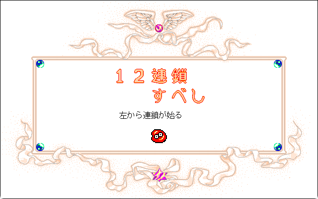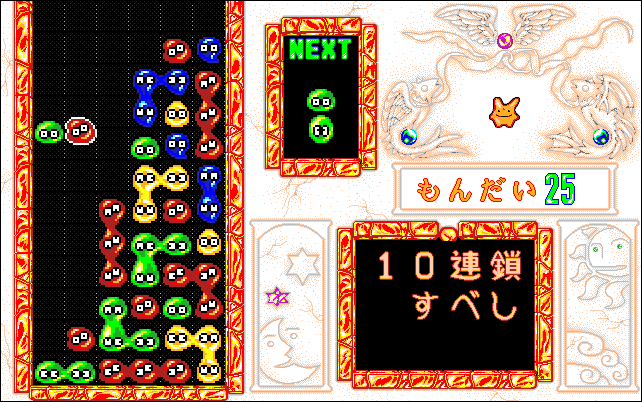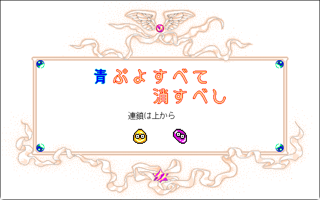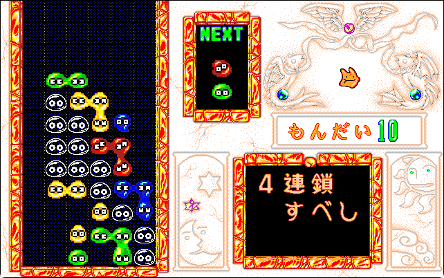 このころのぷよでは、画面内のぷよと、画面外にいるぷよがくっついて消える点に注意。
