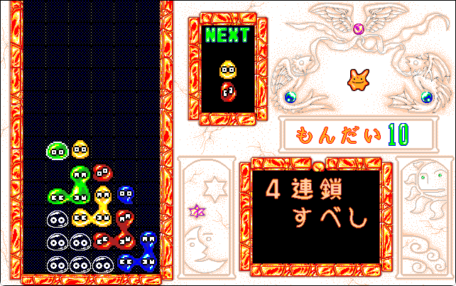 これはとにかくテクニックがいる…もうどういう手順でクリアしたかっていうより、素早くぷよを入れ替えるテクが必要。